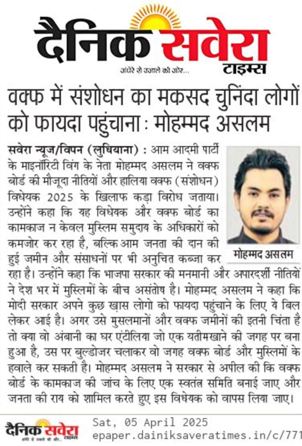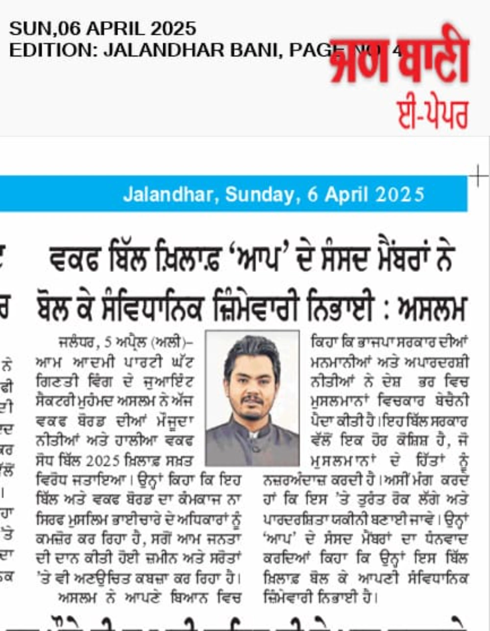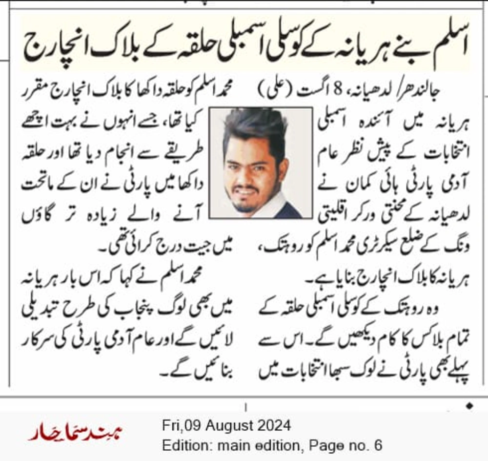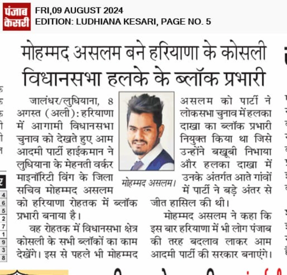 MD Aslam Also Known As Mohammad Aslam is a grassroots leader, social reformer, and a dedicated political voice working to uplift underprivileged communities, empower youth, and advocate for equitable development across Punjab. His journey began in the heartlands of Punjab, where he saw firsthand the challenges of the common man, and vowed to bring change through action, compassion, and dedication.