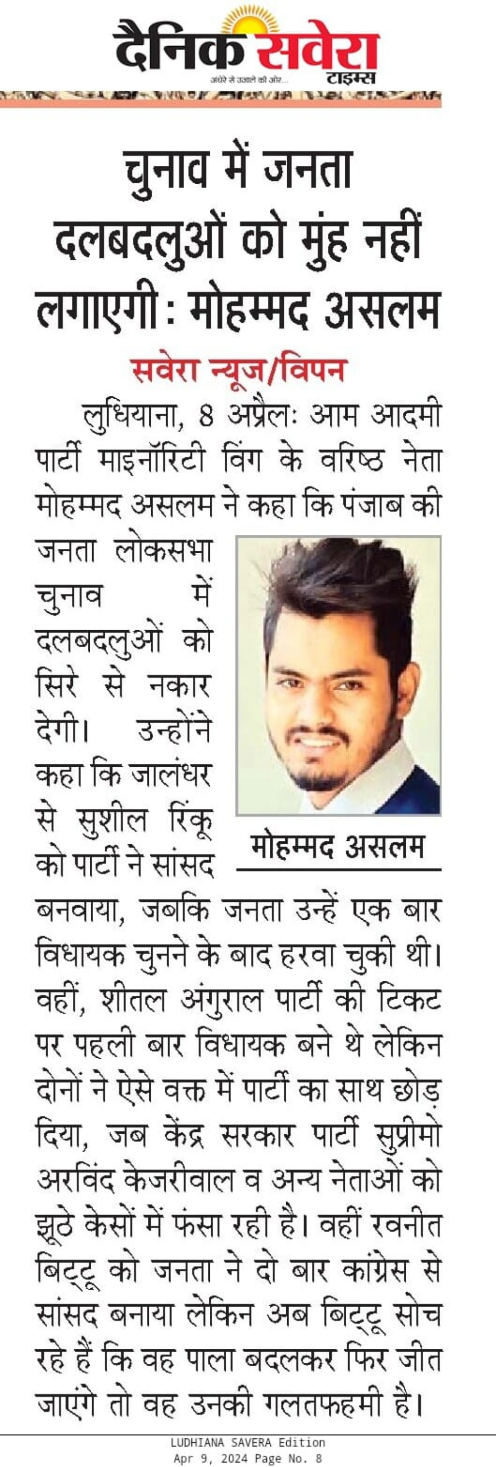 MD Aslam Also Known As Mohammad Aslam is a grassroots leader, social reformer, and a dedicated political voice working to uplift underprivileged communities, empower youth, and advocate for equitable development across Punjab. His journey began in the heartlands of Punjab, where he saw firsthand the challenges of the common man, and vowed to bring change through action, compassion, and dedication.